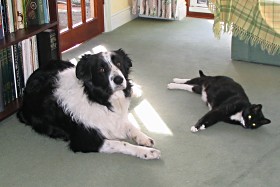 received a playful tap on his foot instructing him to move to let Zippy lie in